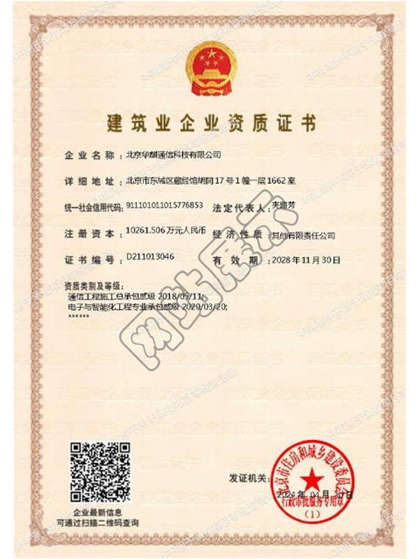 • 通信工程施工總承包貳級(jí)資質(zhì)證書(shū)